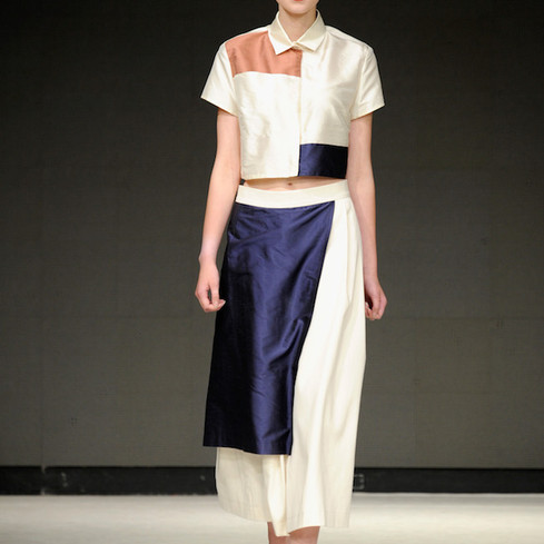 Alice Vaughan Davis’ collection ‘Alternative Faces’ gave homage to Picasso with cubist style faces adorning colorful prints. Patterned shapes in polka dots and stripes splashed fun on structured fitted dresses. Cartoon colors and artistic brushstrokes brought the collection to life.