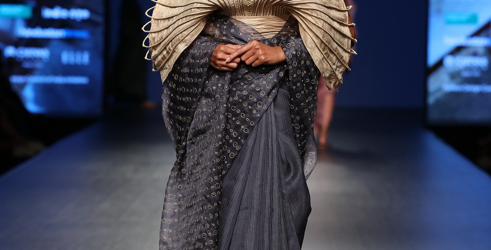 Despite being a symbol of cultural and spiritual significance for centuries, the modernity has shrunk KHUNN to just a few looms today in a small village called GULEDGUDDA in Karnataka. Thus, this collection BISRA (Forgotten one) is a desperate attempt to seek attention of the fashion world to the charismatic charm and glory KHUNN inherits.